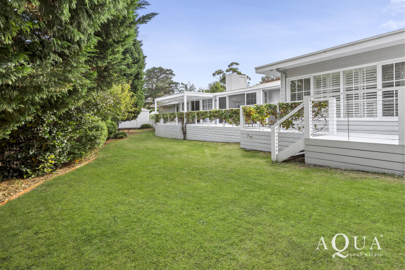 This Golden mile property is gracefully introduced via a set of white gates and picket fencing ahead of a crushed rock return driveway amidst verdant landscaped grounds culminating into a forecourt with double auto garage and welcoming undercover verandah entry.