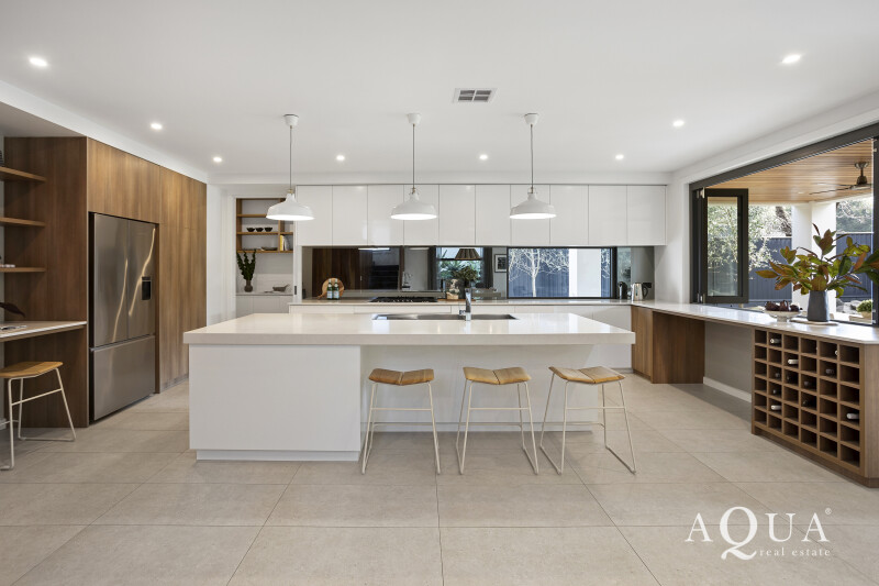 An outstanding showpiece of thoughtful architectural design set in professionally landscaped gardens and offering a superb address between the village and Ranelagh Beach, executive family living has reached new heights. Just a short walk to shops and restaurants, Mt Eliza tennis club, and only a 10 minute stroll to the popular Ranelagh Club, this sprawling four-bedroom plus study home blends high-end inclusions with modern grandeur and a floorplan that offers open-plan living/dining extending out to a covered north-facing alfresco area and firepit zone.