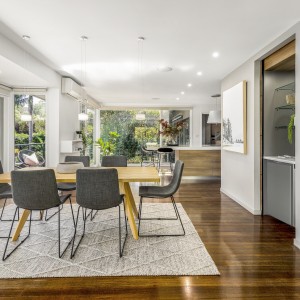 A comprehensive butler’s pantry services this area with instant filtered hot/cold water Zip tap, excellent preparation surfaces and storage solutions, perfect for the avid gourmand.