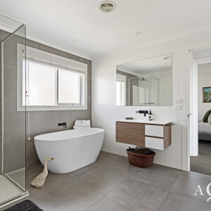 The four impeccable bedrooms are serviced by a sumptuous Jack & Jill dual access bathroom designed around a large freestanding Kado deep soaking bath, shower, floor to ceiling tiling, Cibo vanity and separate WC.